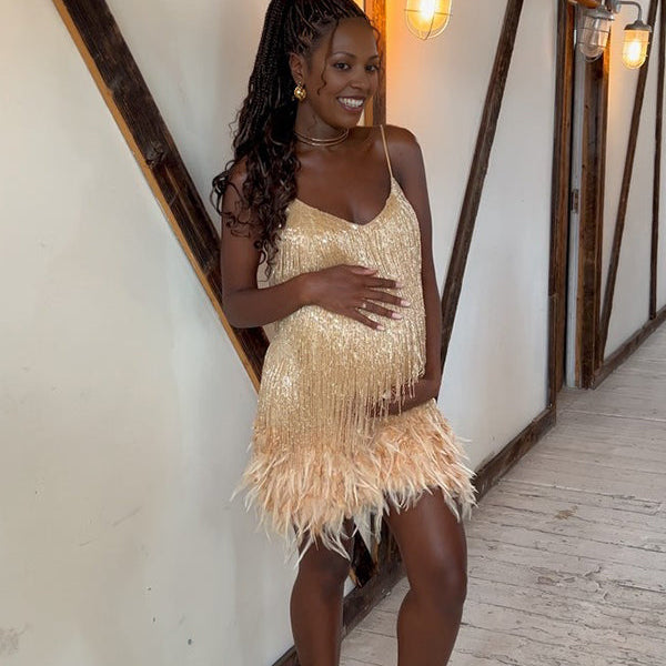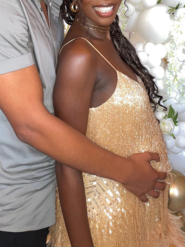 Chicnmom Corto Vestido Boda Embarazada Invitada Con Lentejuelas Y Borla De Ajustado Para Premamá Fiesta