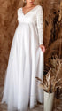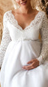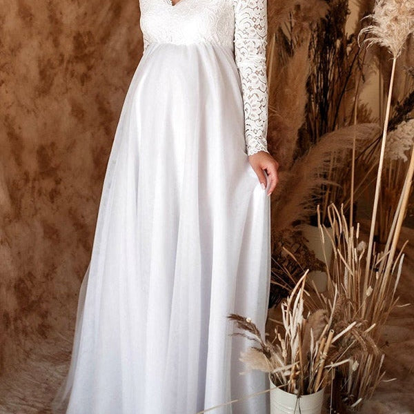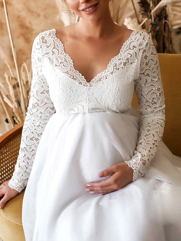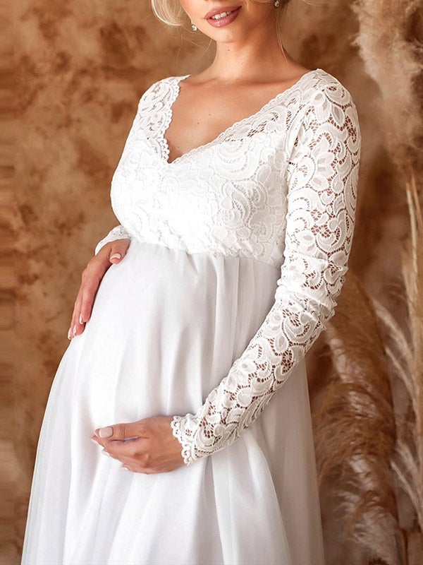 Chicnmom Vestidos Embarazada Boda Y Novia Blanco Con Escote Pico Y Encaje Para Premama Noche