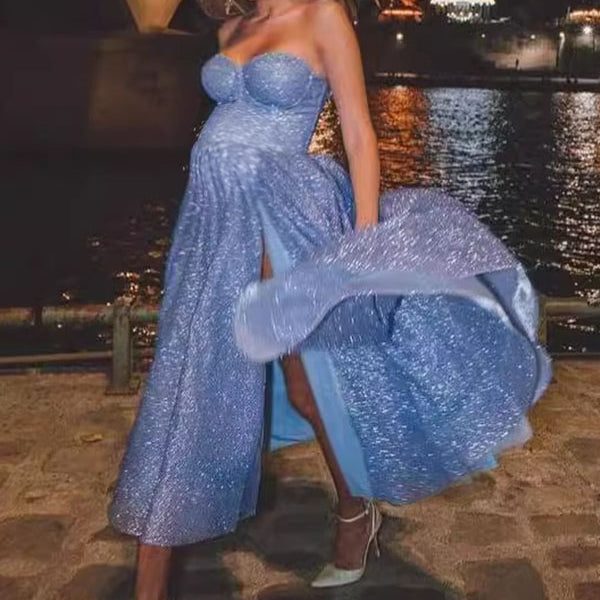 Chicnmom Azul Vestidos Embarazada Invitada Maxi De Premama Brillante De Tubo Vestido Largo De Fiesta De Lactancia