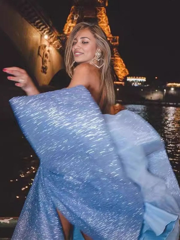 Decoración : Espalda descubierta, hombros descubiertos, abertura, escote palabra de honor, abertura lateral izquierdo