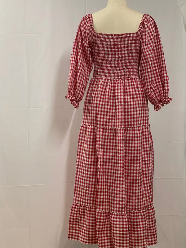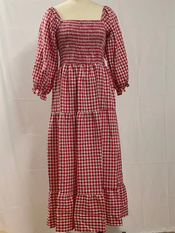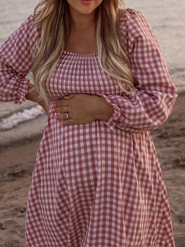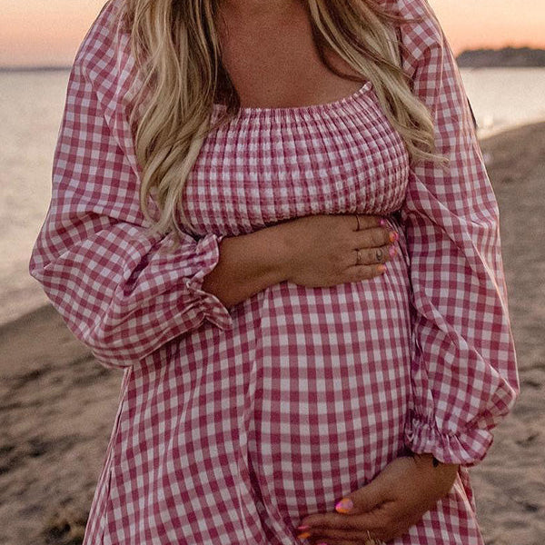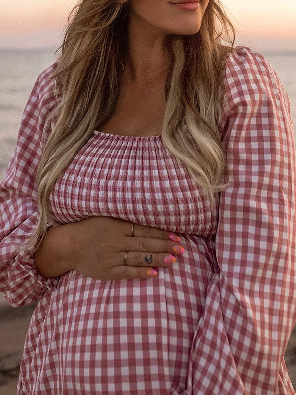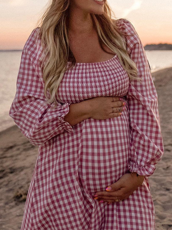 Chicnmom Rojo Sin Hombros A Cuadros Gran Swing Premamá Fotografía de fiesta de bebé Vestidos Maxi