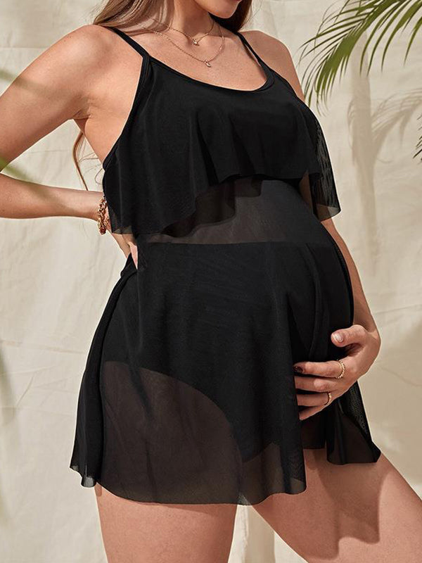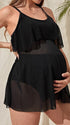 Chicnmom traje de bañador premamá de dos piezas con volantes de gasa y tirantes en negro