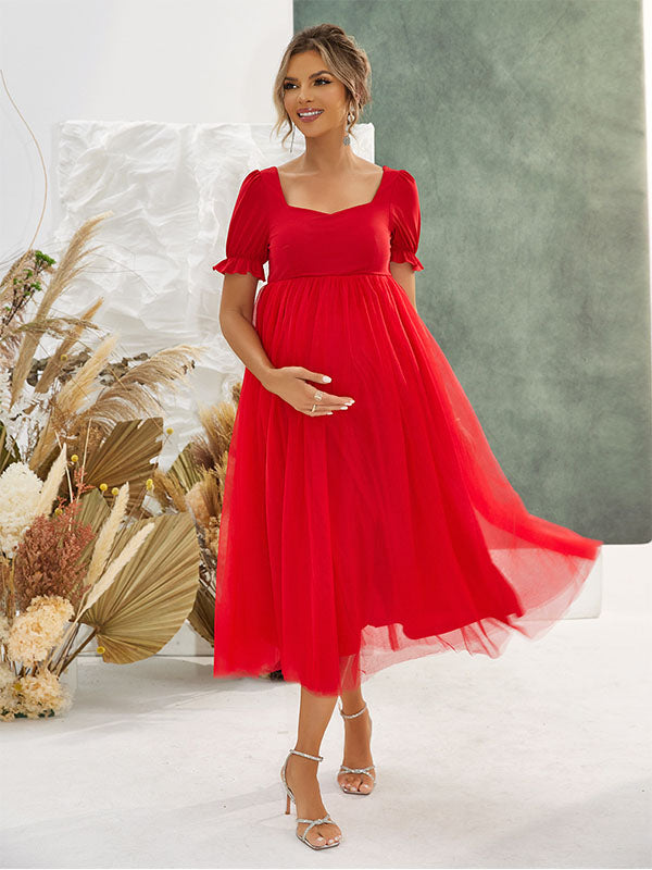 Chicnmom Tul Manga Globo Elegante Fotografía vestidos para embarazadas