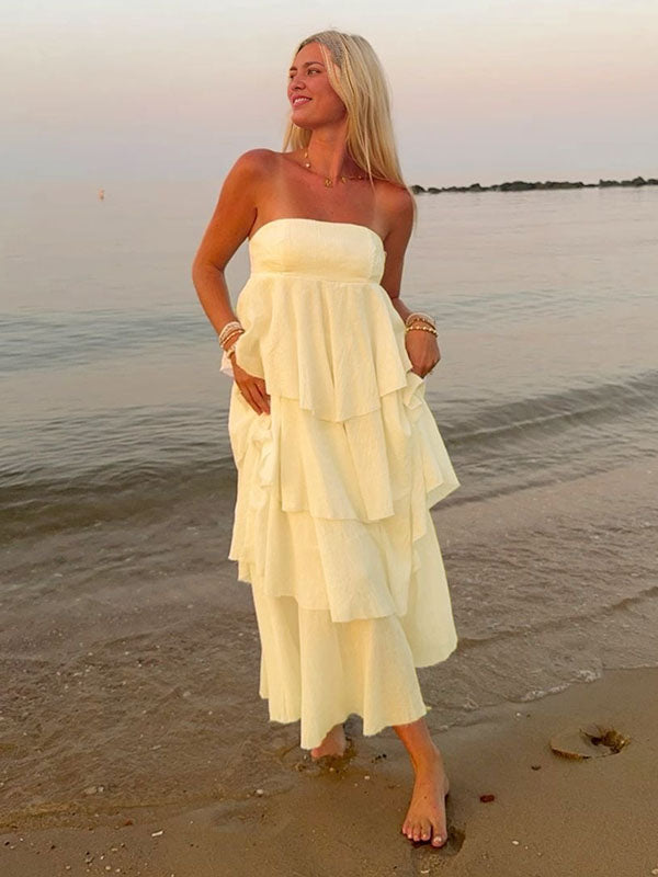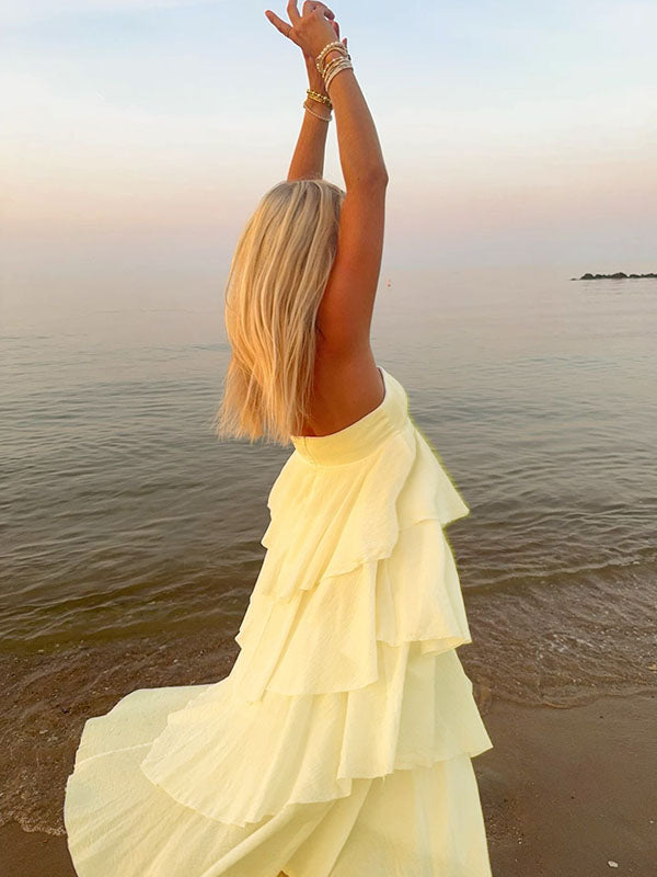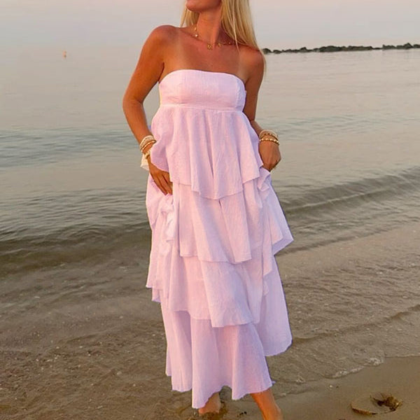Chicnmom Vestido Larga para Fotos Premama de Tubo con Volantes