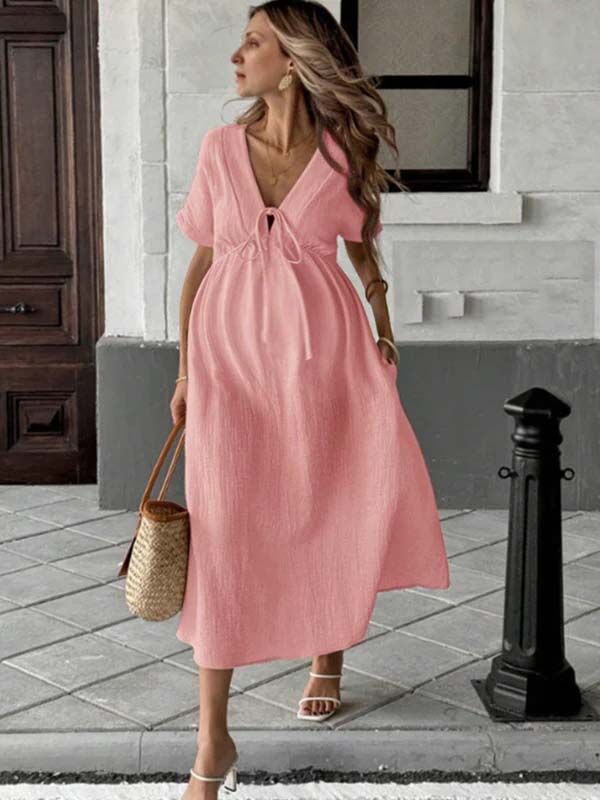 Chicnmom Vestidos largo Premamá Cinturón Fluidez Trapecio Rosa