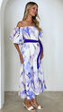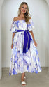 Chicnmom Vestidos largo Premamá tie-dye Cinturón Hombros descubiertos Azul