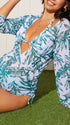 Detalles: Estampado de hojas tropicales, cordón en la cintura, transparente