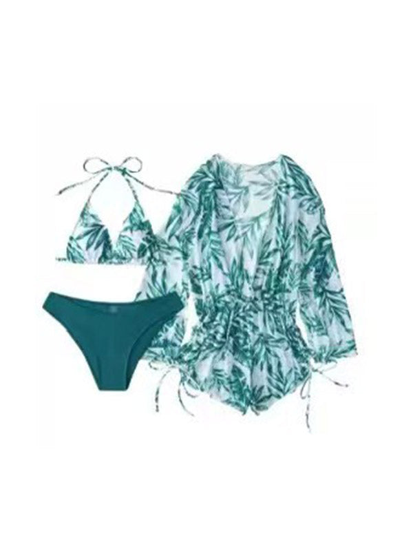 Chicnmom Bañador premamá de tres piezas con estampado de hojas de palma para mujer
