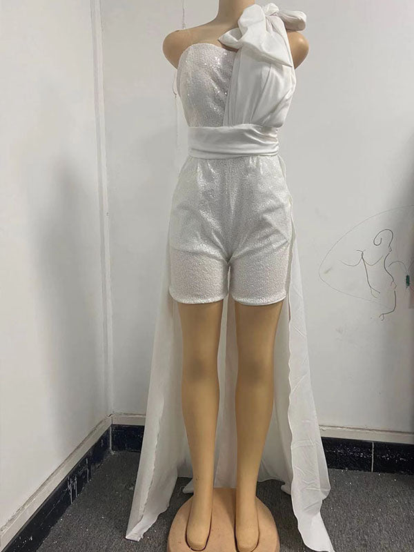 Chicnmom Corto Mono Premamá de Fiesta y boda Lentejuelas un Hombro y Lazo para embarazo Noche Elegantes