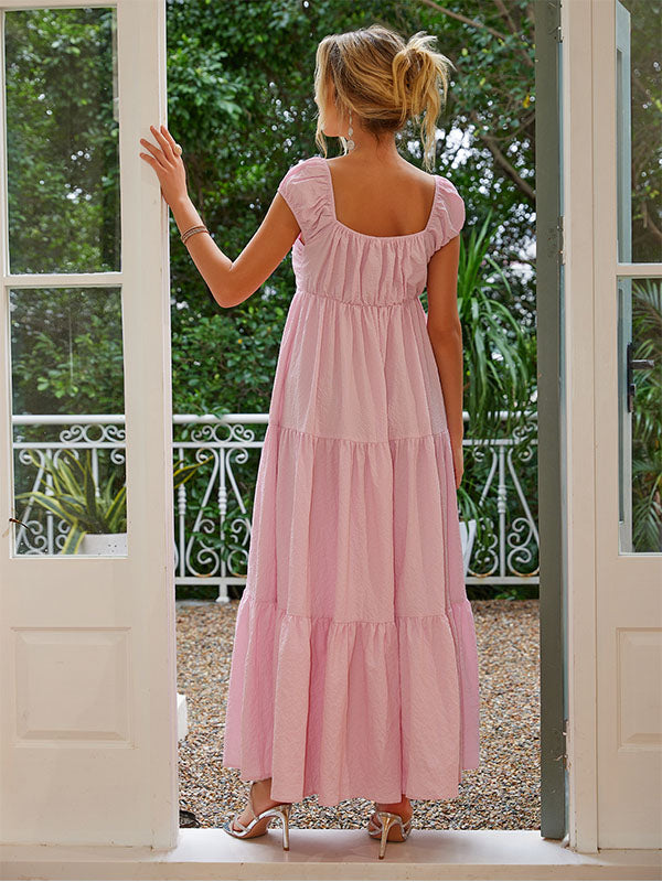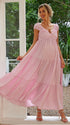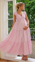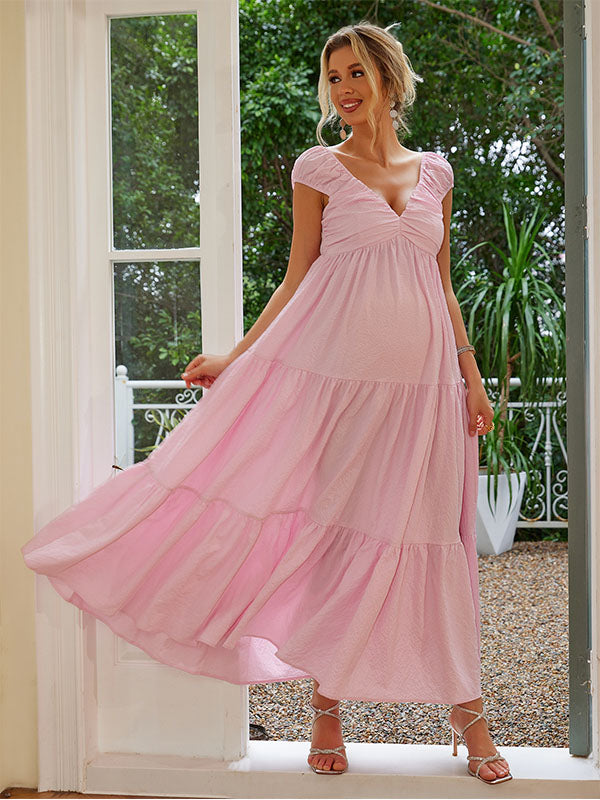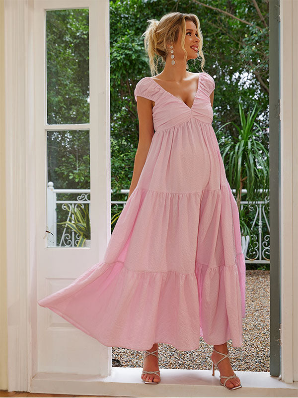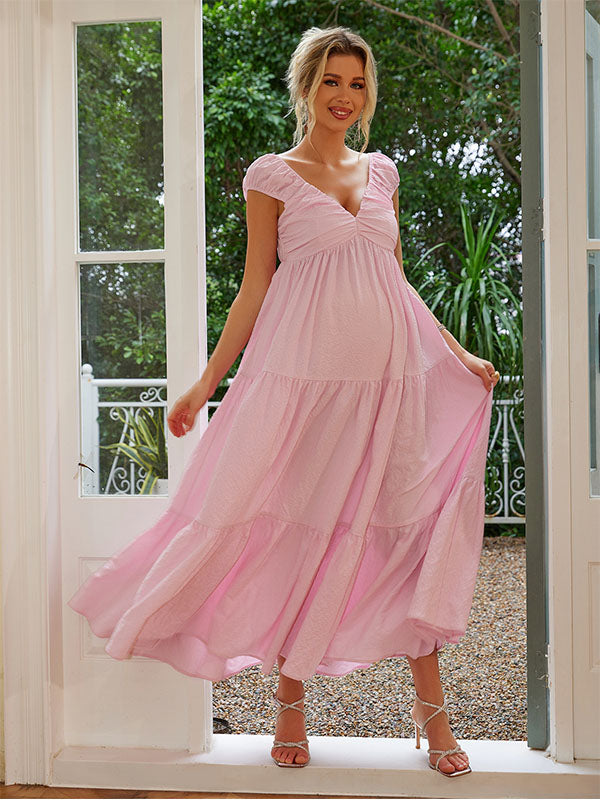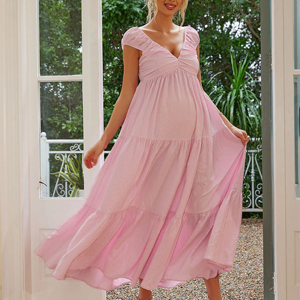 Chicnmom Cuello en V Pliegue empalme Volantes vestidos para embarazadas