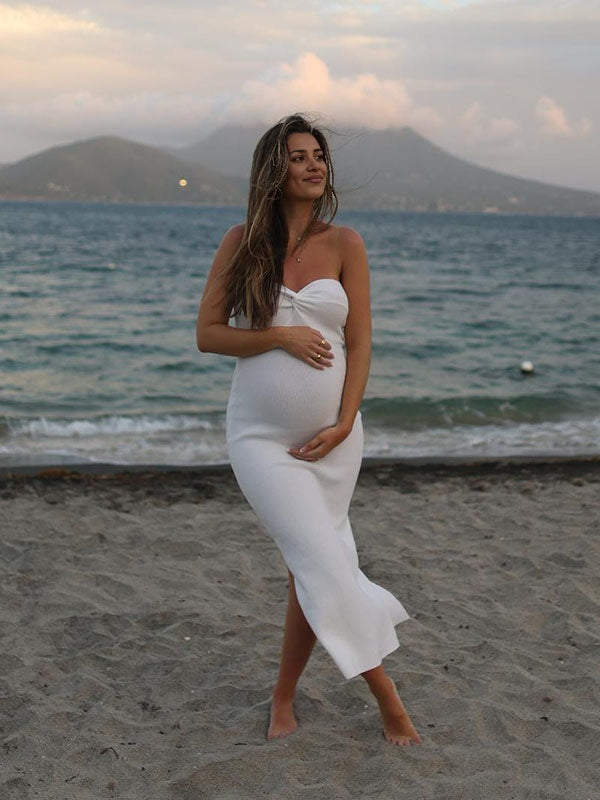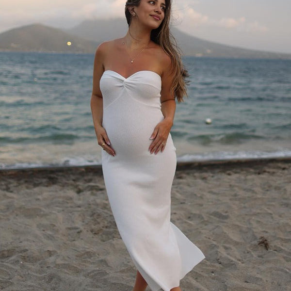 Chicnmom Escote palabra de honor Génerodepunto Playa Vacaciones vestidos para embarazadas
