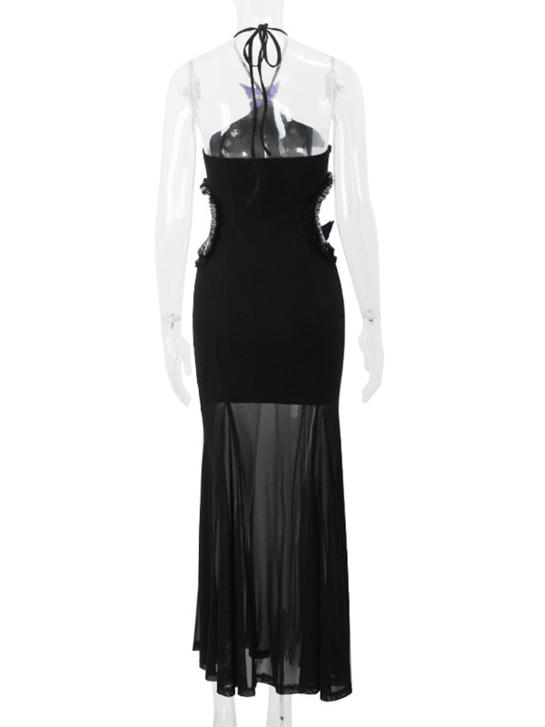 Decoración: mariposa 3d, malla, recortado, camisola, sirena, volantes en capas, falbala, tirantes finos, sin espalda