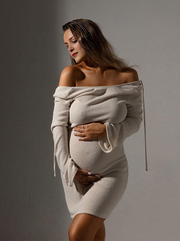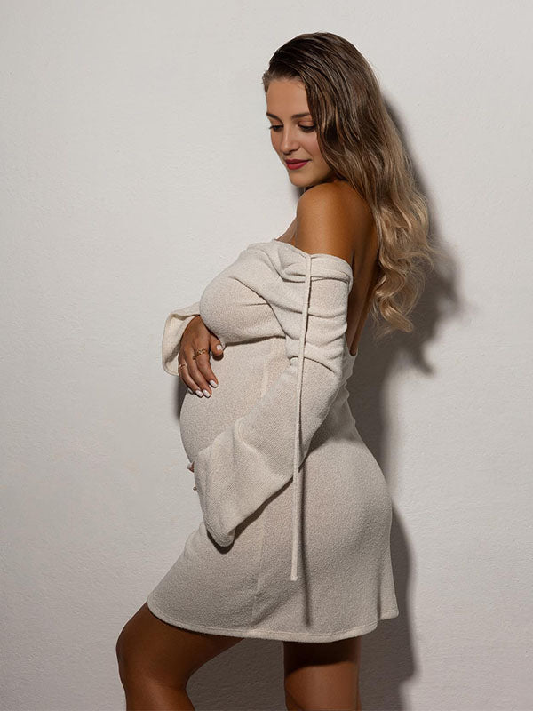 Chicnmom Mama Vestido Tipo Jersey Corto de Punto de Premamá Con Espalda descubierta