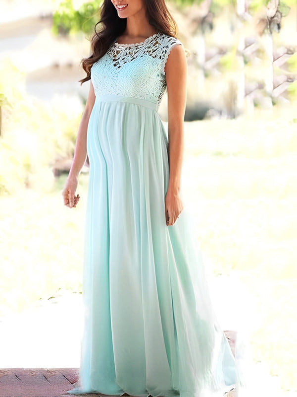 Chicnmom Sesión de fotos Baby Shower gasa encaje patchwork cuello redondo elegante dulce noche maternidad maxi vestido