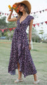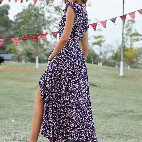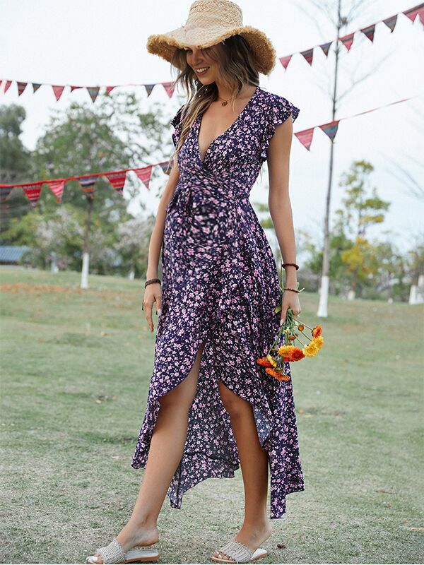Chicnmom Vestido de flores premamá Lazo Volantes Azul Marino