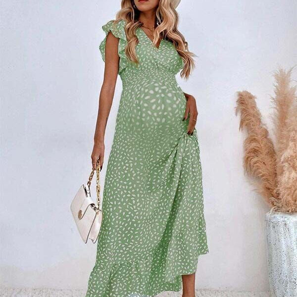 Chicnmom Vestido de flores premamá Volantes Verde Claro