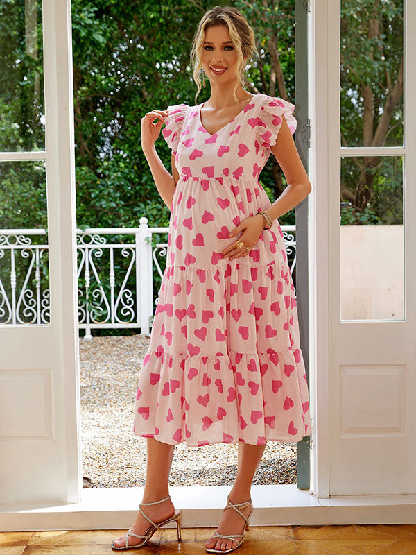 Chicnmom Vestido de Premamá con Volantes y Estampado de Corazones