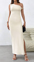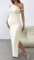 Chicnmom Vestido largo premamá Abertura Hombros descubiertos Blanco