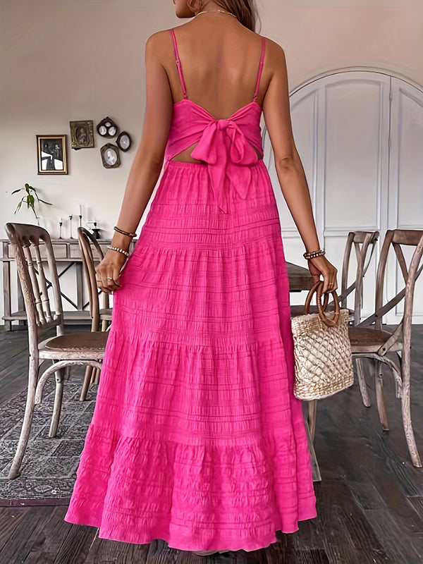 Chicnmom Vestido largo premamá Espalda Descubierta Lazo Rosa Roja