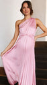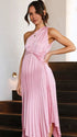 Chicnmom Vestido largo premamá Hombro caído Plisado Irregular Rosa
