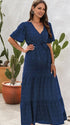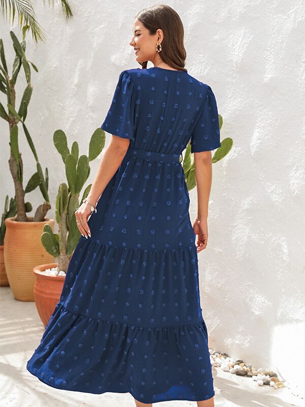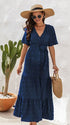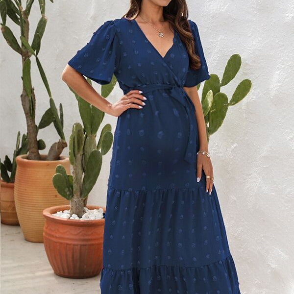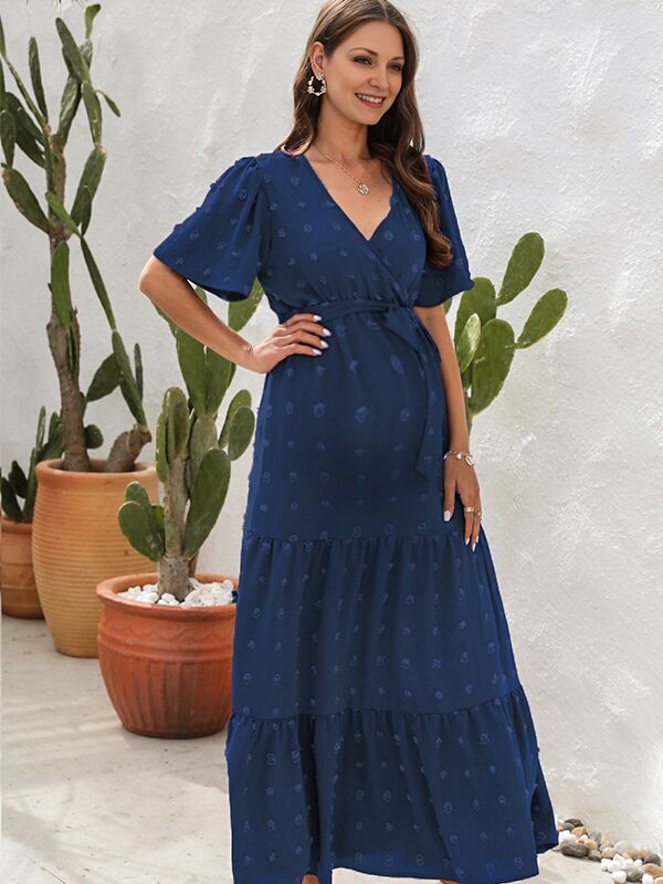 Chicnmom Vestido largo premamá Lazo Cinturón Azul