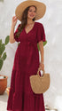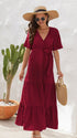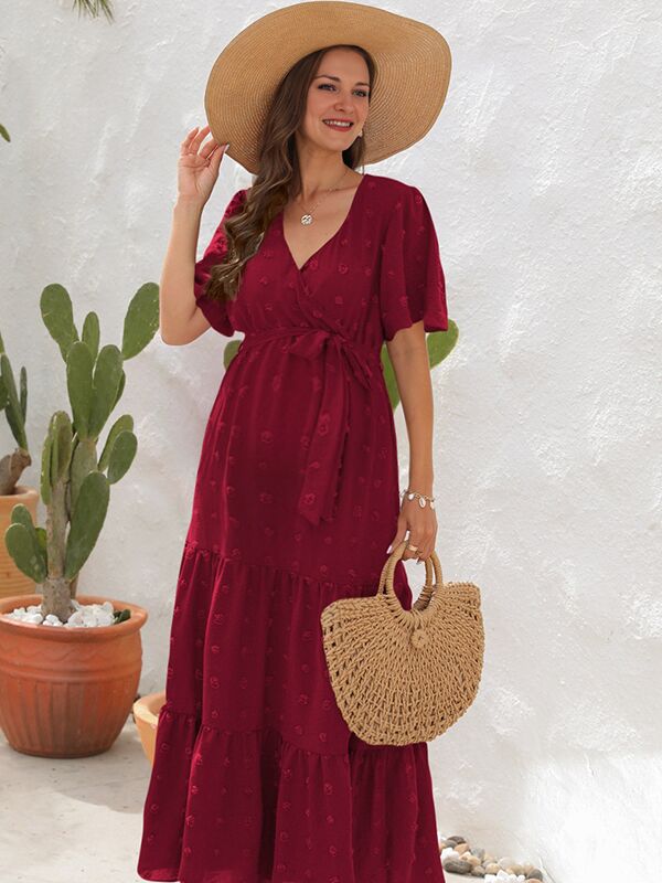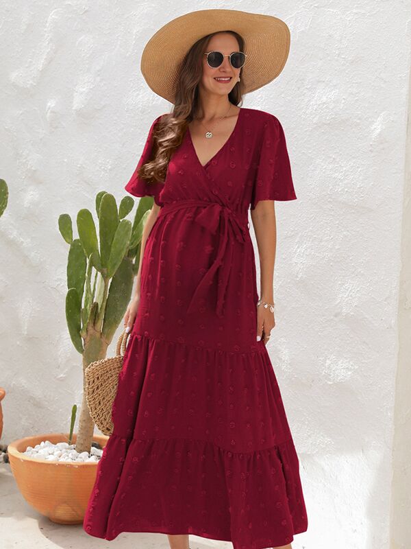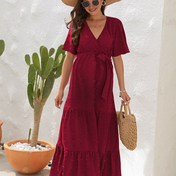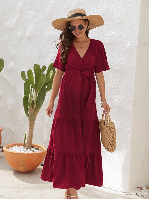 Chicnmom Vestido largo premamá Lazo Cinturón Burdeos