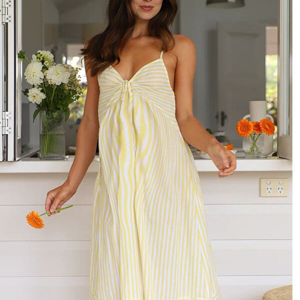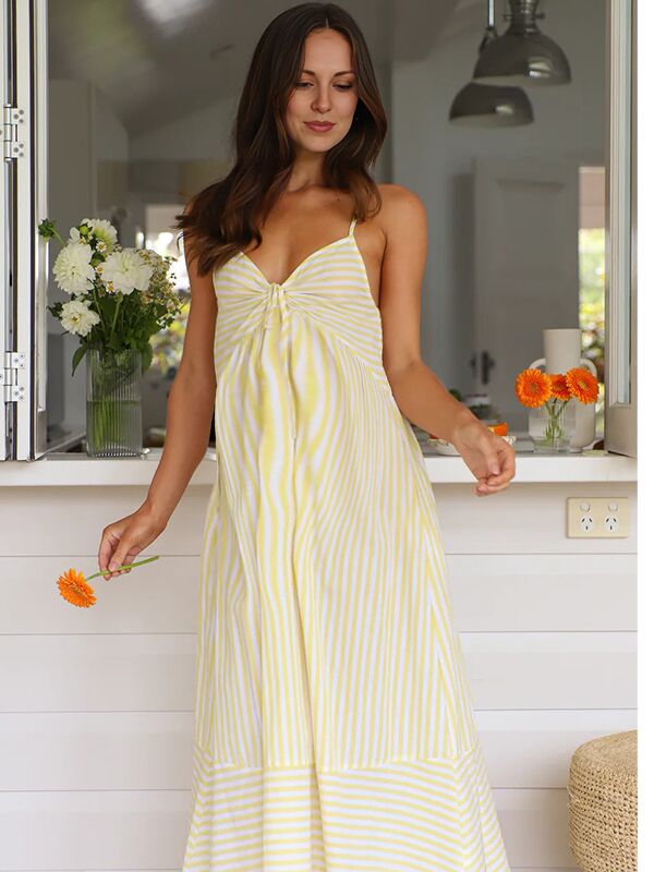 Chicnmom Vestido largo Rayas premamá De tirantes Amarillo Claro