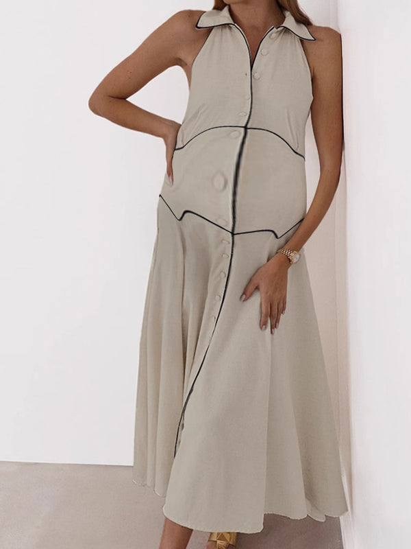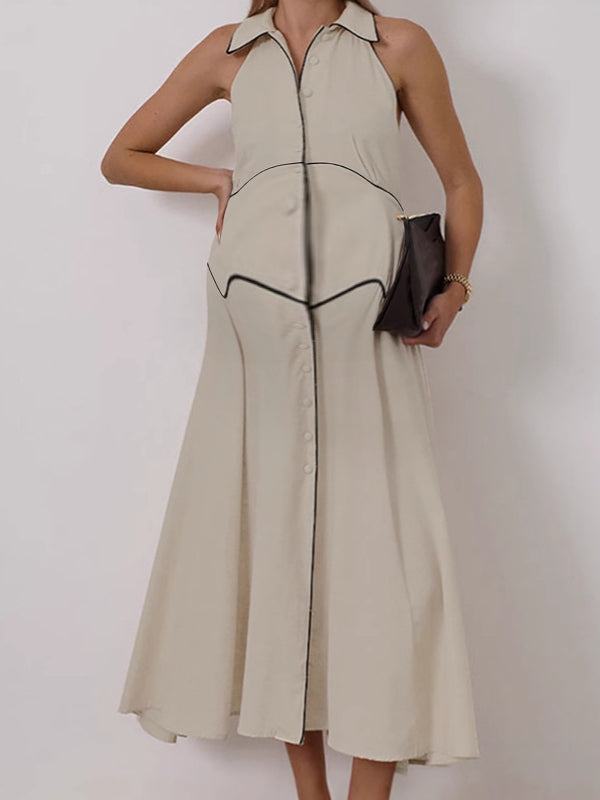 Chicnmom Vestidos casuales premamá De un solo botón Caqui