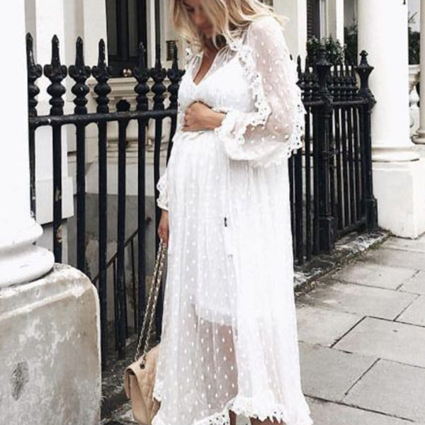 Chicnmom Vestidos de Premama Boho Elegantes con Volantes y Estampado de Lunares