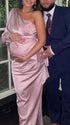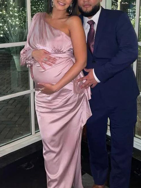 Chicnmom Vestidos Embarazada Fiesta de Satén con un Hombro y Cinturón para Premamá Cóctel