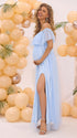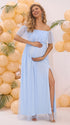 Chicnmom Vestidos largo Premamá Abertura Lentejuelas Tul Azul
