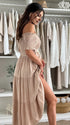Chicnmom Vestidos largo Premamá Cinturón Hombros descubiertos Caqui