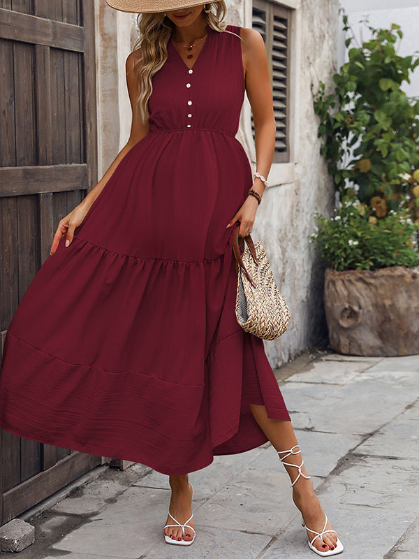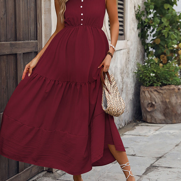 Chicnmom Vestidos largo Premamá De un solo botón Fluidez Burdeos