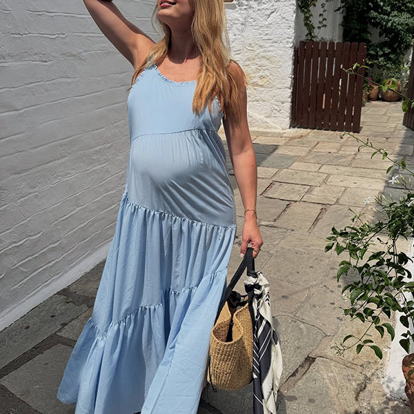 Chicnmom Vestidos largo Premamá Empalme Fluidez De tirantes Azul Cielo