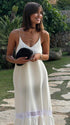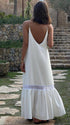 Chicnmom Vestidos largo Premamá Encaje Volantes Espalda Descubierta Blanco