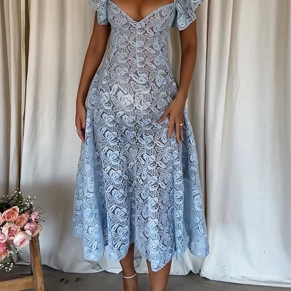Decoración : Encaje, volantes, trapecio, espalda descubierta