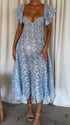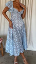 Chicnmom Vestidos largo Premamá Encaje Volantes Trapecio Azul Claro