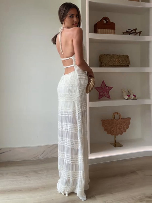 Chicnmom Vestidos largo Premamá Espalda Descubierta Fluidez Blanco