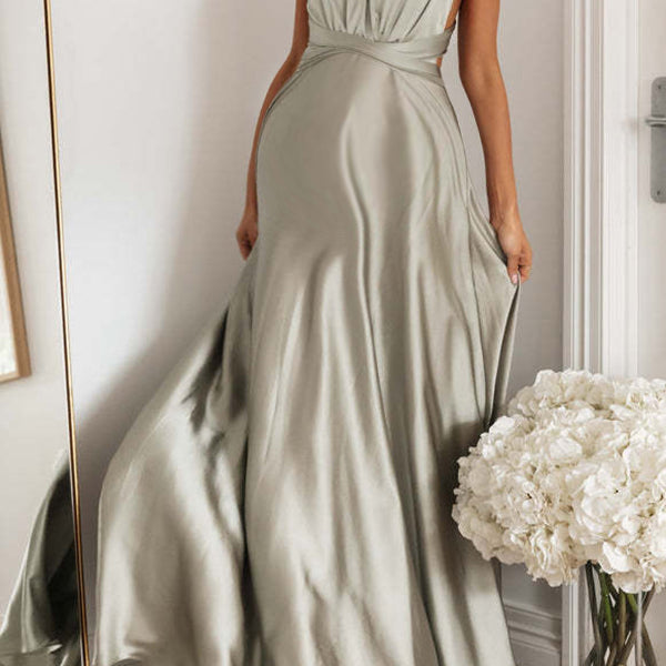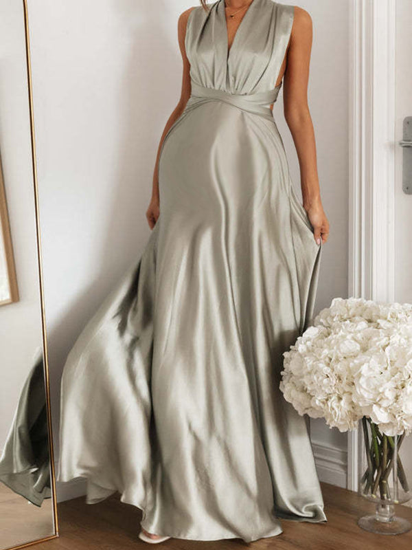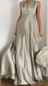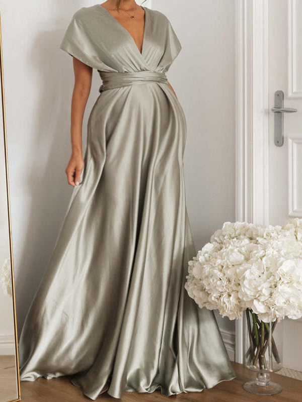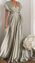 Chicnmom Vestidos largo Premamá Espalda Descubierta Fluidez Gris