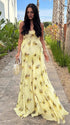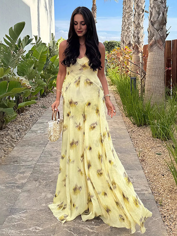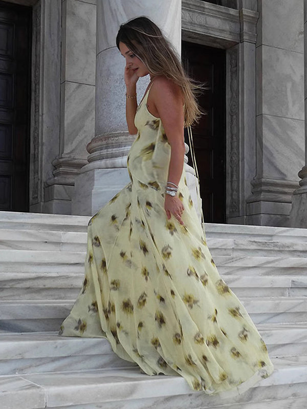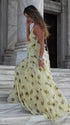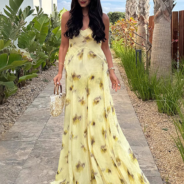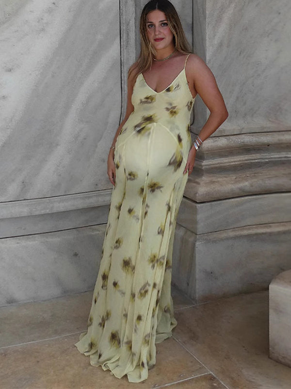 Chicnmom Vestidos largo Premamá Estampado Espalda Descubierta Amarillo