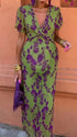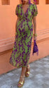 Chicnmom Vestidos largo Premamá Estampado Pecho fruncido Verde