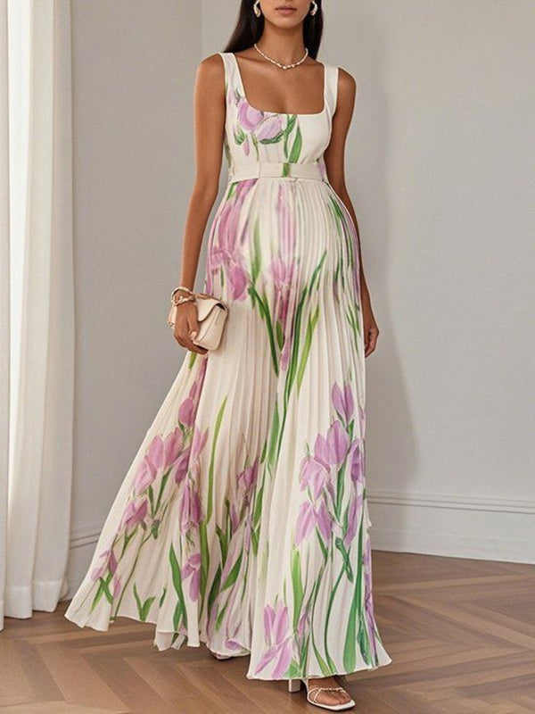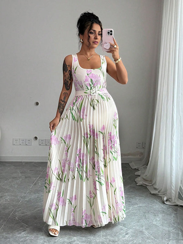 Chicnmom Vestidos largo Premamá Floreado Plisado Blanco