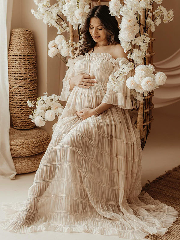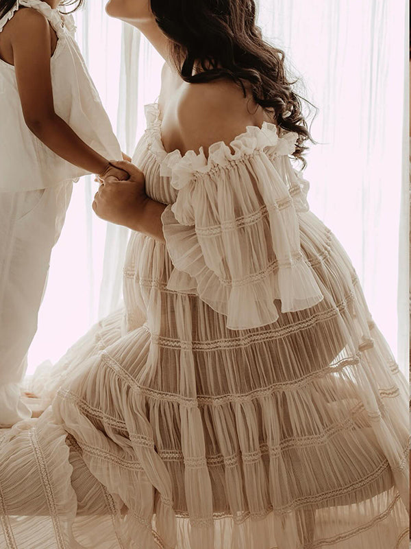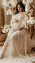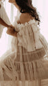 Chicnmom Vestidos largo Premamá Fotografía Tul Abertura Beige