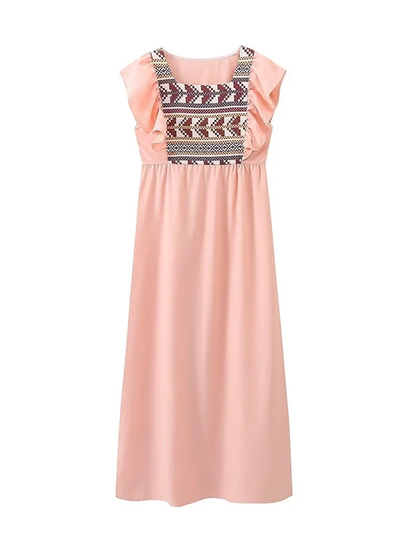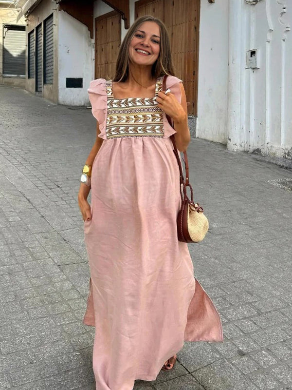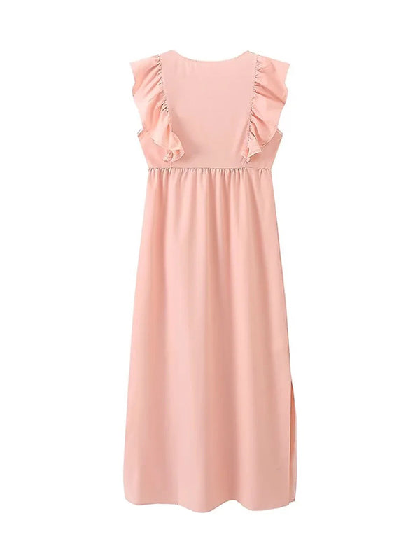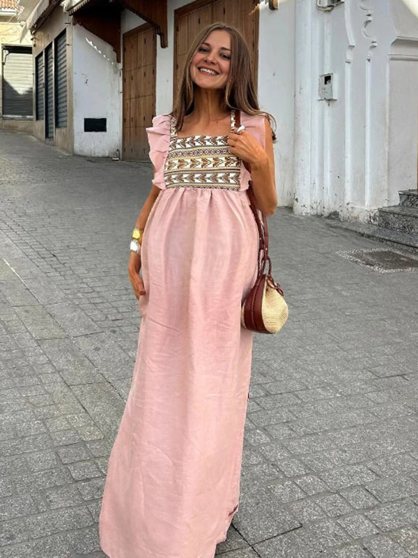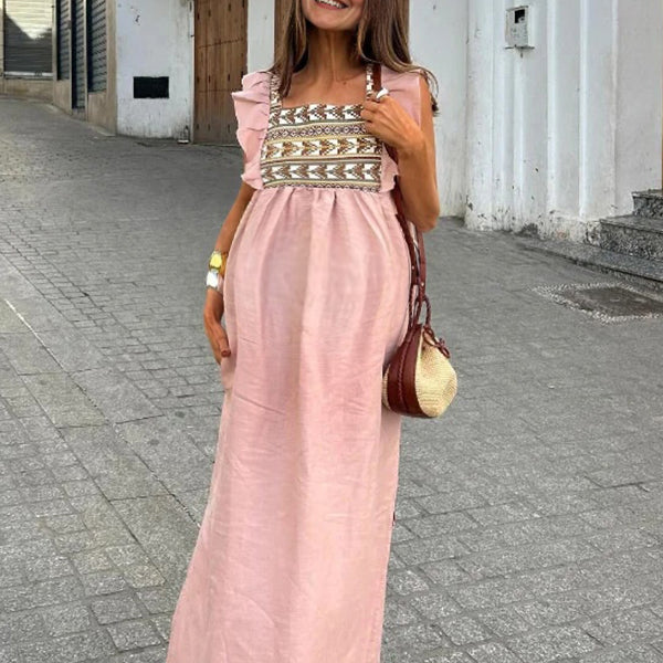 Chicnmom Vestidos largo Premamá Geométrico Volantes Rosa