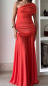 Chicnmom Vestidos largo Premamá Hombro caído Fluidez Rojo