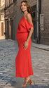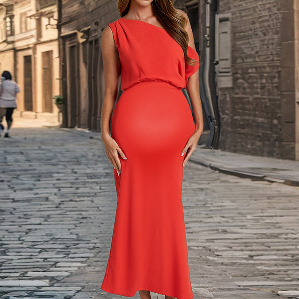 Chicnmom Vestidos largo Premamá Hombro caído Fluidez Rojo