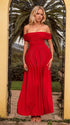 Chicnmom Vestidos largo Premamá Hombros descubiertos Fluidez Rojo