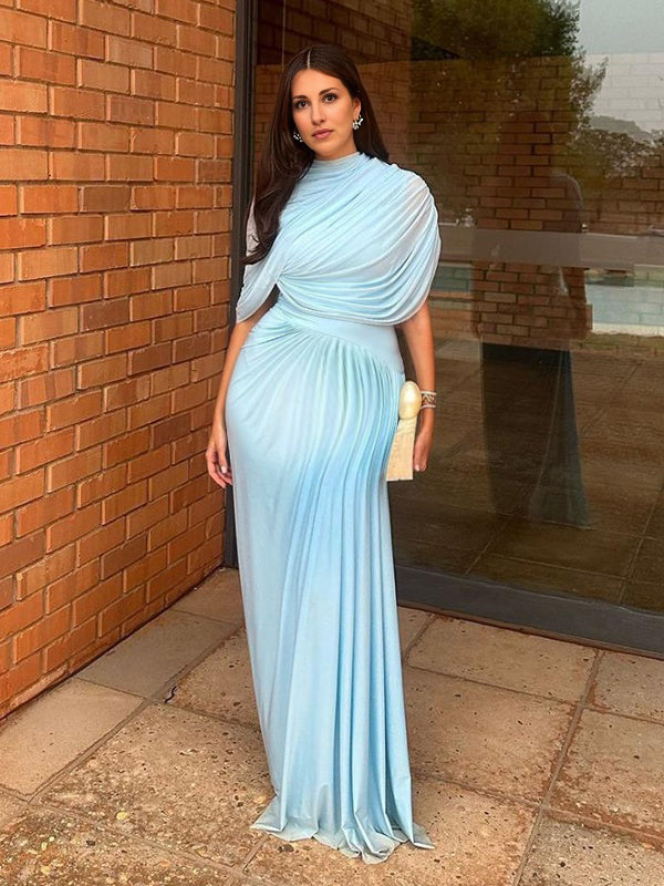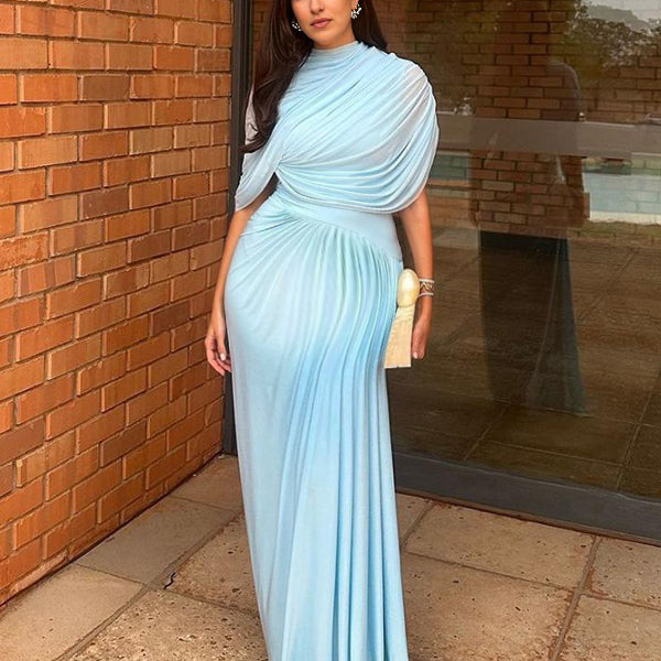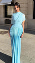 Chicnmom Vestidos largo Premamá Irregular Pliegue Azul Claro