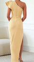 Chicnmom Vestidos largo Premamá Pliegue Volantes Abertura Un hombro Albaricoque
