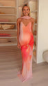 Chicnmom Vestidos largo Premamá teñido anudado Estampado Espalda Descubierta Rosa